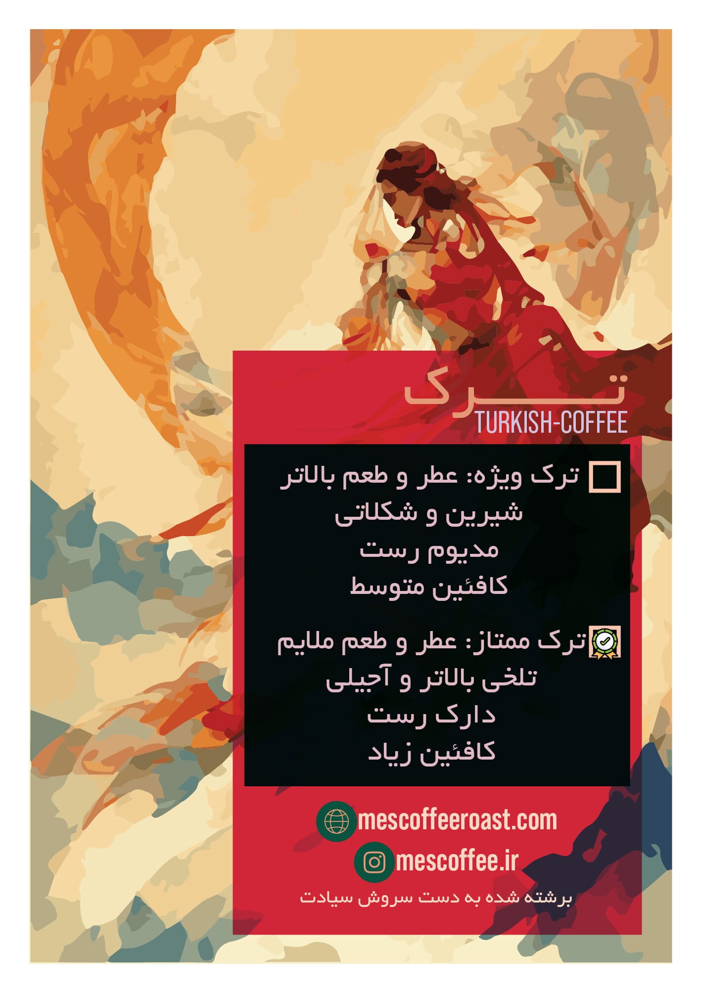 قهوه ترک ممتاز برشته کاری قهوه مص توضیحات طعمی تکمیلی